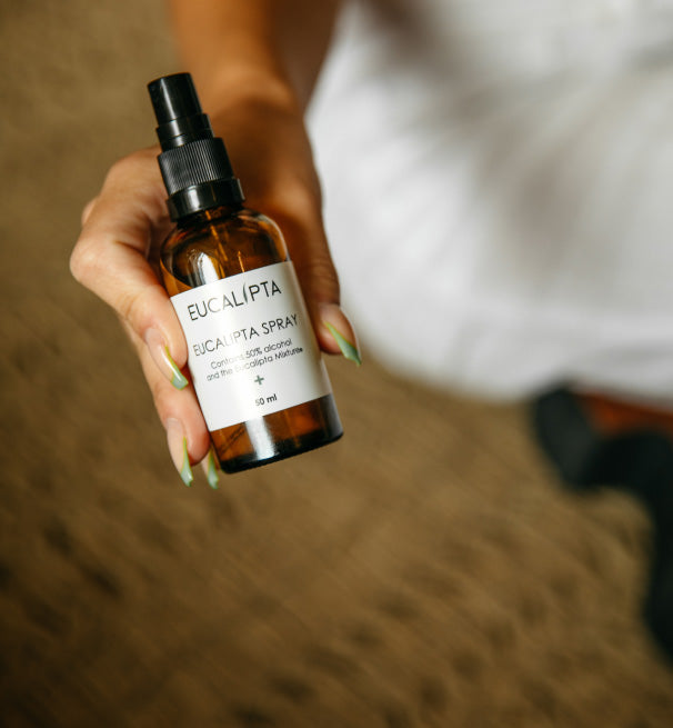 תרסיס על בסיס תערובת האקליפטה, מועשר בשמנים אתריים טהורים המחטאים את האוויר,מסייע בהרגעת עקיצות,מחטא משטחים, מסייעים לנשימה ומטהרים את החלל. ניתן לרסס על משטחים, דלתות, ידיות, מעליות. ניתן לרסס על מסכה ממרחק של כ-30 ס”מ לספיחת הלחות, סיוע בנשימה ומניעת גירויים ופצעים באזור המסכה. ניתן לרסס על גרביים או בתוך נעל סגורה על מנת לספוח את הלחות, מניעת זיעה וריחות לא נעימים.